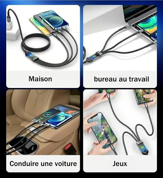 Câble De Données 3 En 1 Transparent Et Lumineux Avec Chargement Ultra Rapide